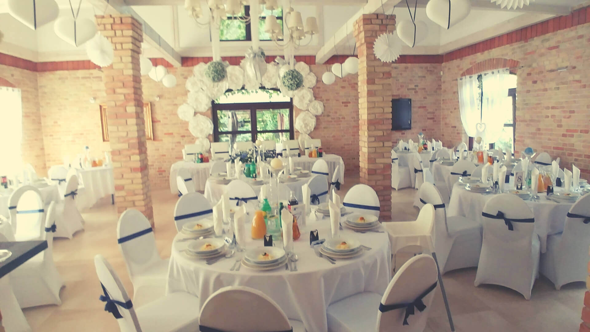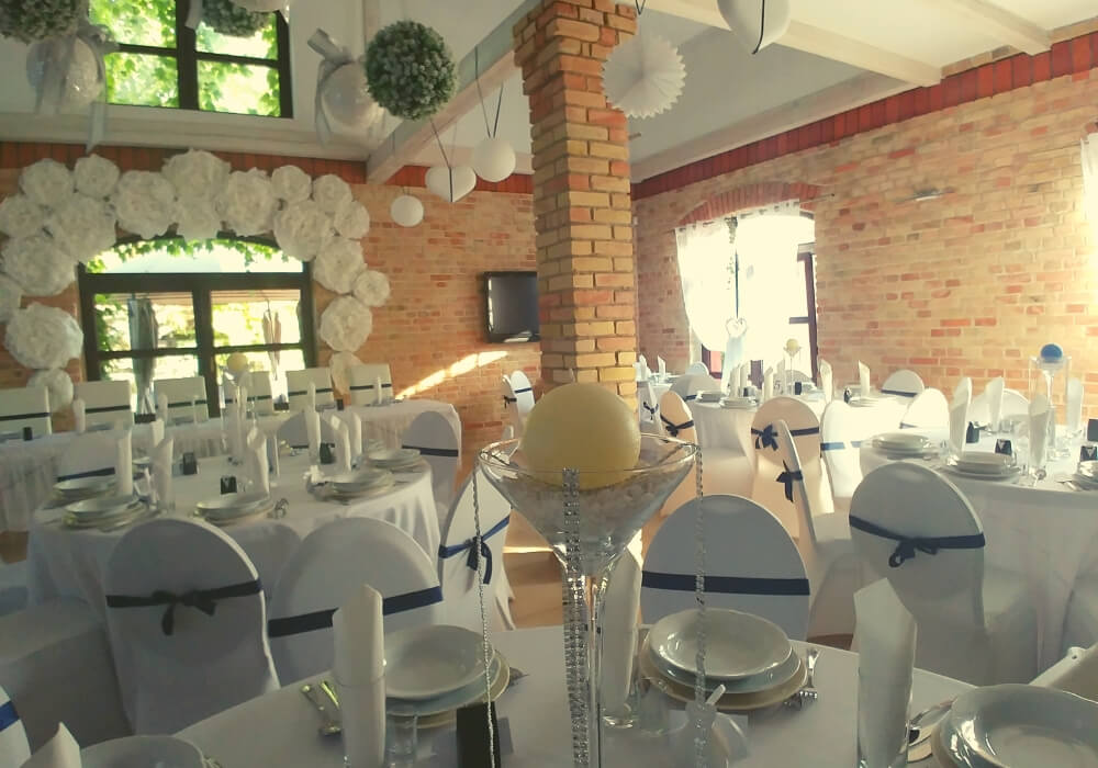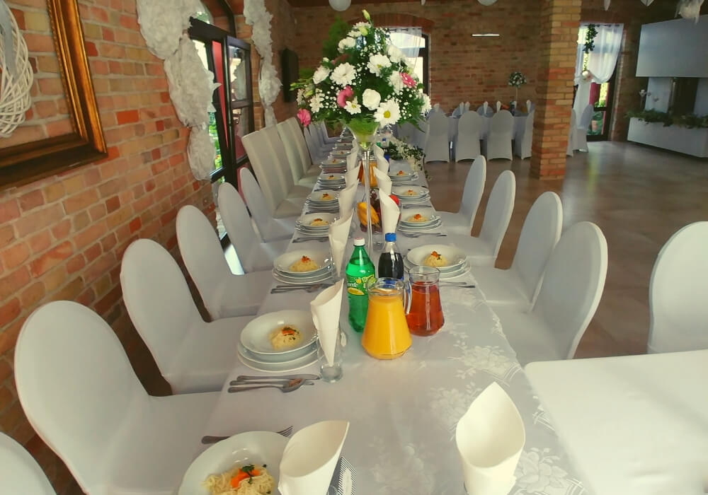 Obiekt położony jest z dala od zgiełku miasta,a najbliższe sąsiedztwo to tylko piękny Jabłoniowy Sad oraz zieleń drzew. W naszym Domu mamy dwie Sale Weselne, któremu mieszczą 200 osob. Jena z nich stanowi całoroczny Pawilon Weselny zintegrowany z Domem Weselnym. Mogą one stanowić jedna calość bądź dwie oddzielne Sale Bankietowe dopasowując się do Waszych potrzeb. W Domu są 4 duże, dwuosobowe pokoje gościnne (każdy z możliwością 2 dostawek)